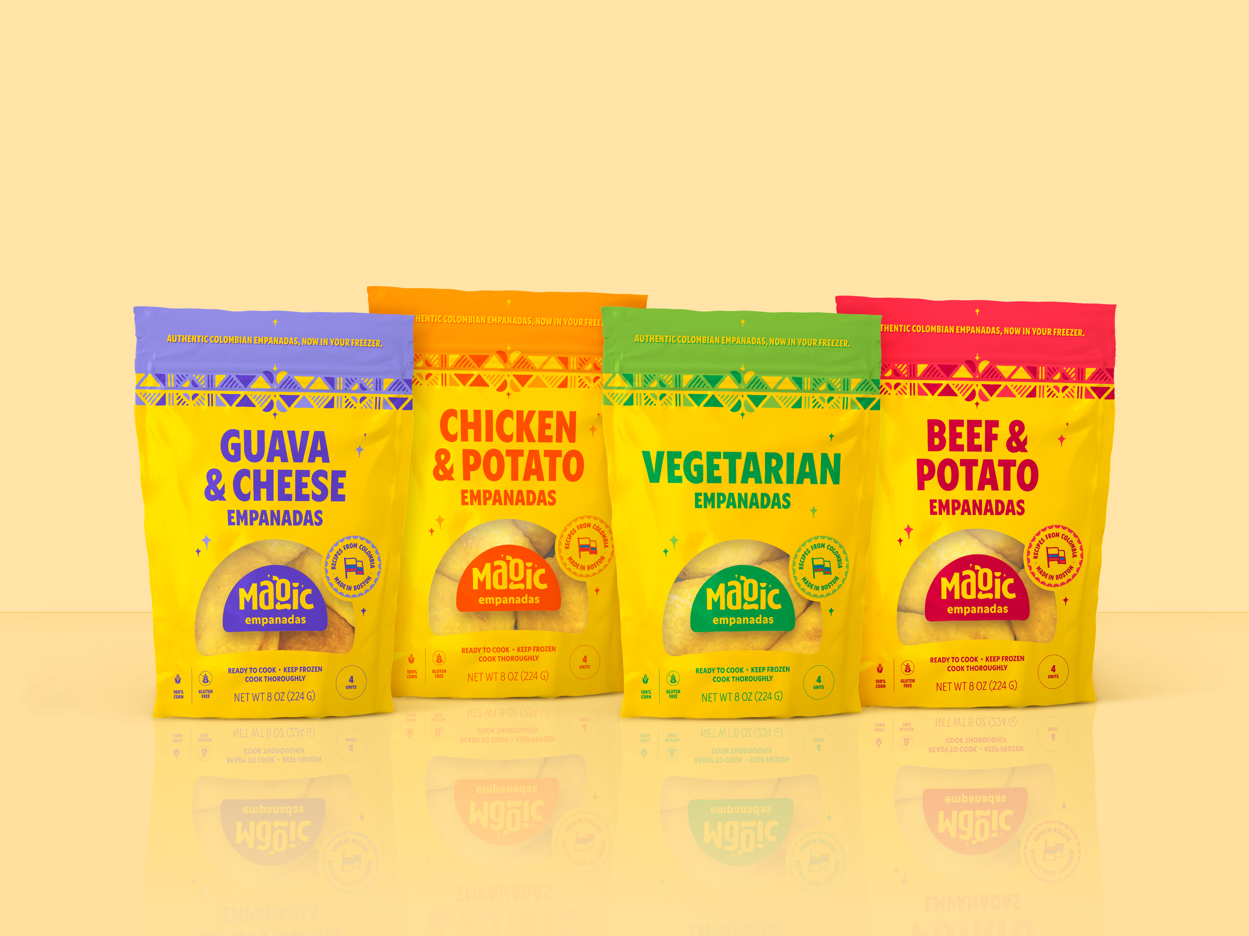 Magic Empanadas, a startup CPG brand, was inspired by the owner’s family restaurant in Bogotá, Colombia. Their belief that each empanada holds a magical mix of simple, authentic ingredients was the heart of our design approach. We created bold, vibrant designs inspired by Colombian culture and flavors.