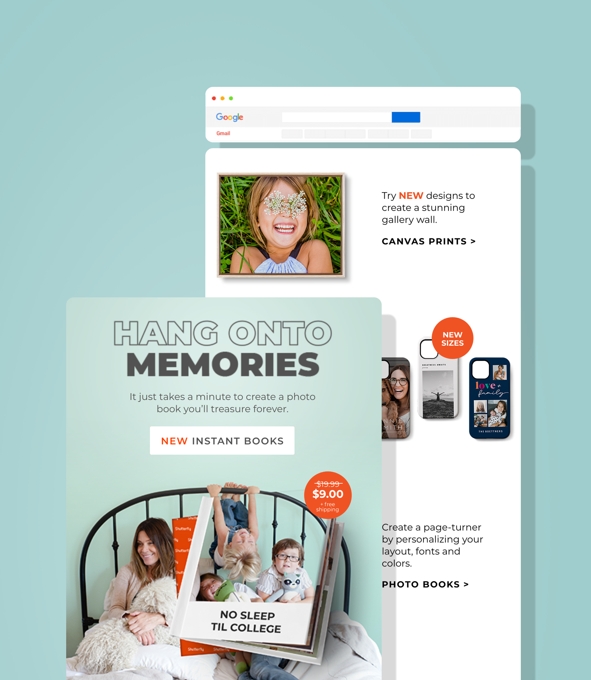 I worked closely with the Shutterfly creative team to take quarterly marketing plans from concept to realization. This work included producing evergreen and seasonal content for marketing emails, social media campaigns, in-app messaging, and paid digital advertising.
